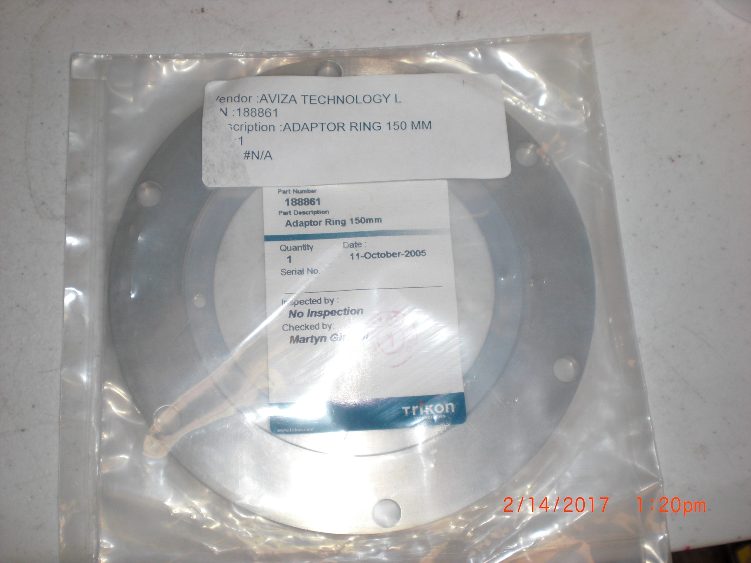 Description: AVIZA TECHNOLOGY 188861 ADAPTOR RING 150MM