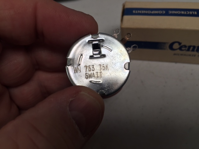 Description: CENTRALAB WN-753 POTENTIOMETER, LINEAR TAPER, 5 WATT WIREWOUND, 75K OHMS