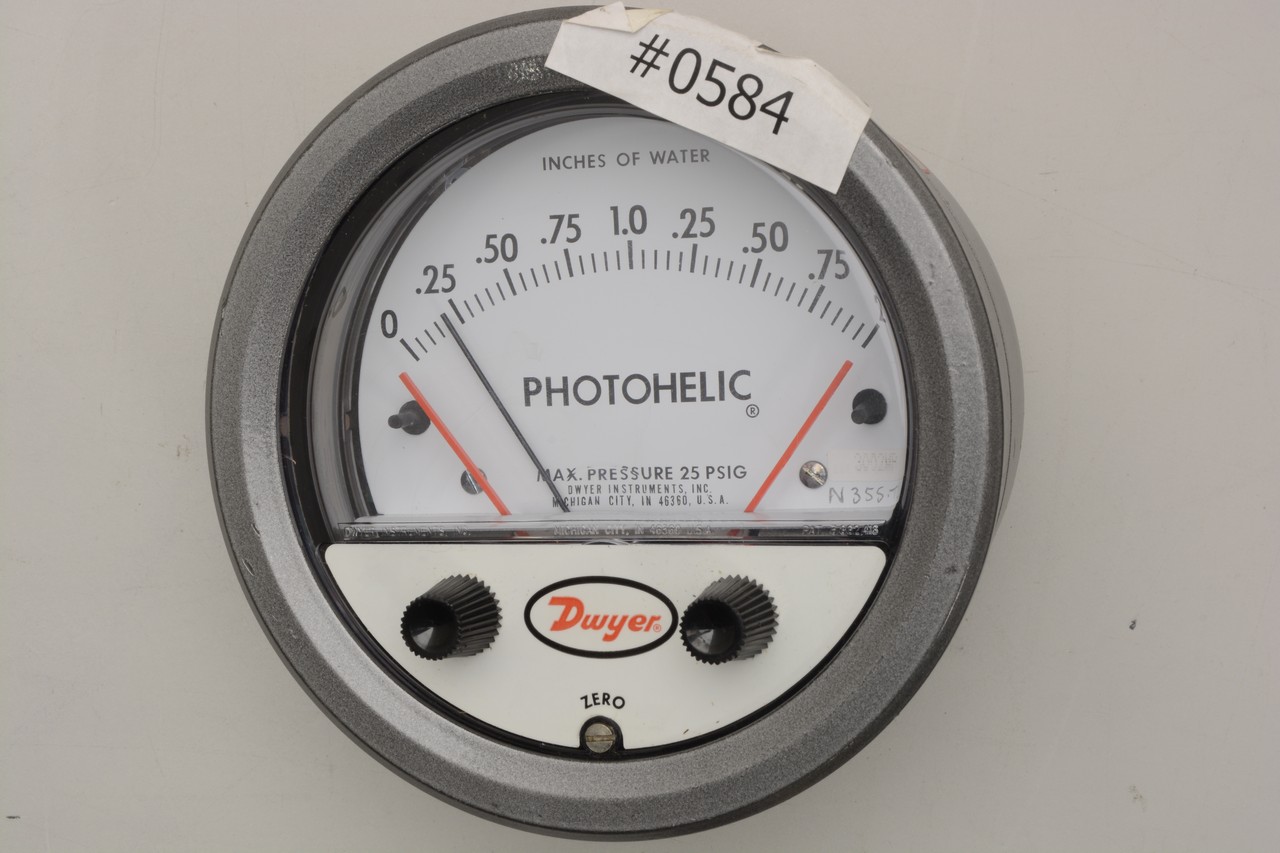 Description: DWYER PHOTOHELIC PRESSURE SWITCH-GAGE, 0-0.5IN. MINOR DIVISIONS
