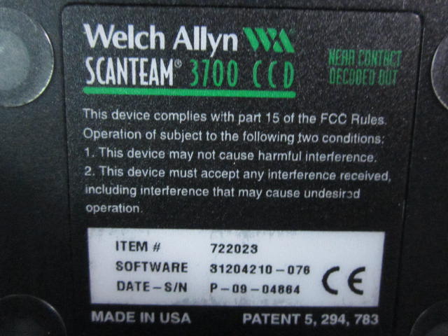 Description: WELCH ALLYN 722023 SCANTEAM 3700 CCD BARCODE-READER SOFTWARE