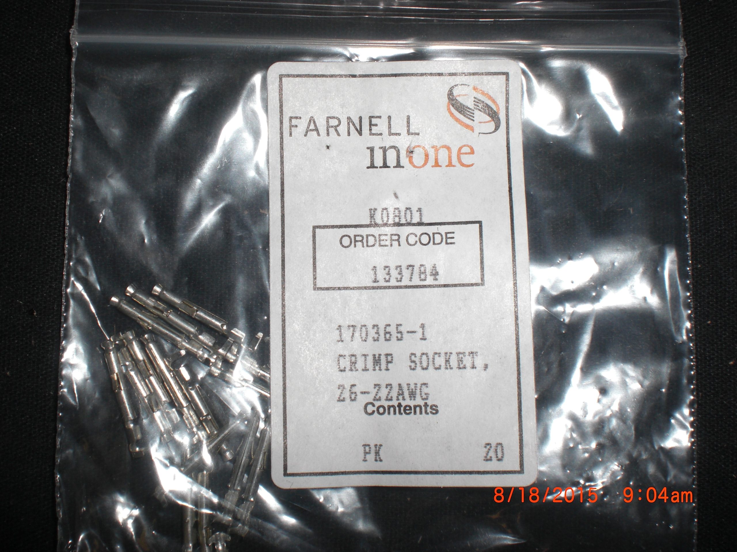 Description: FARNELL K0801 Crimp Socket 26-22 AWG Wire PKG 100