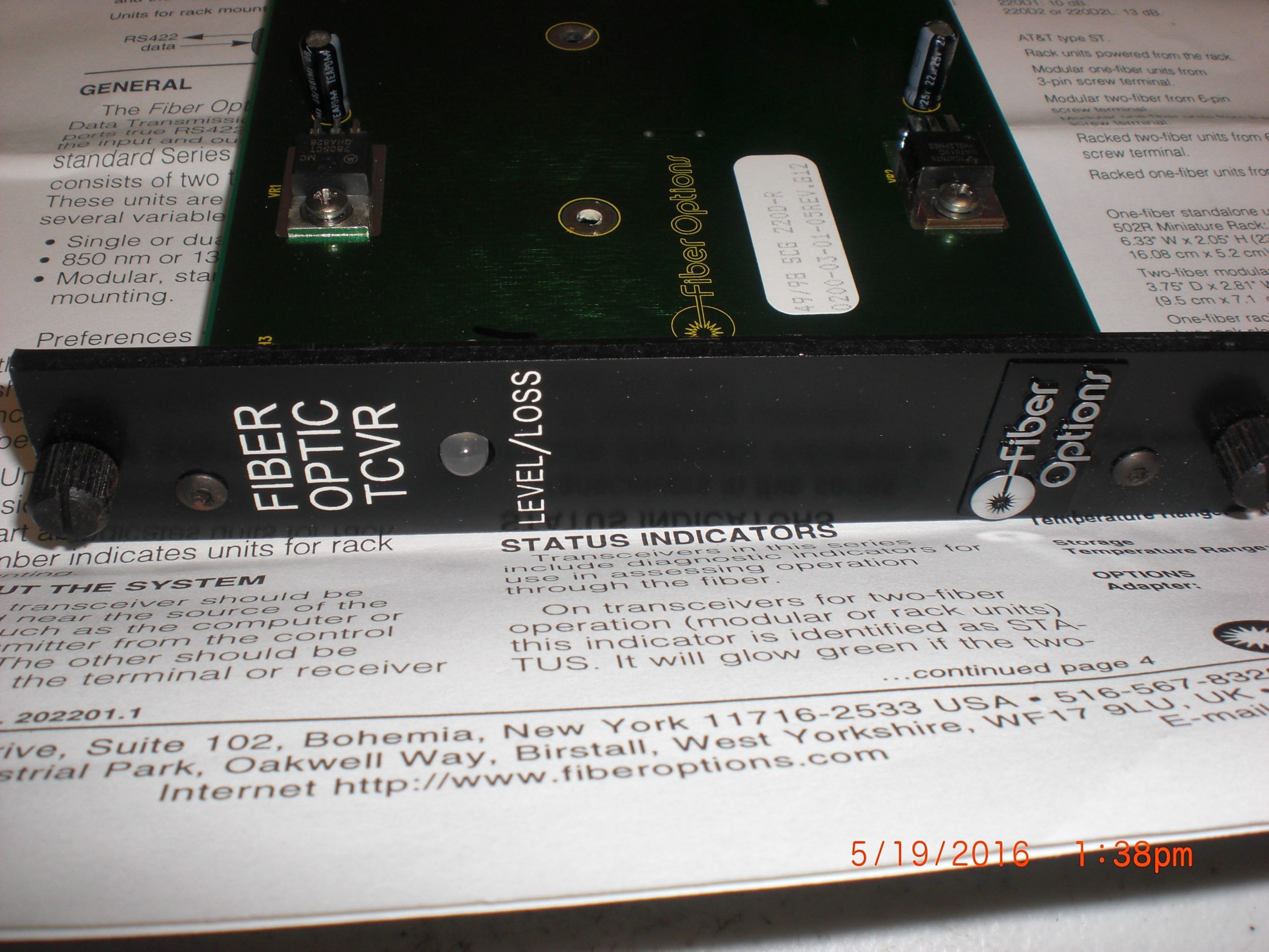 Description: FiberOptions 0200-03-01-05 220D2-R/1B44 RS422 Data Transmission Receiver