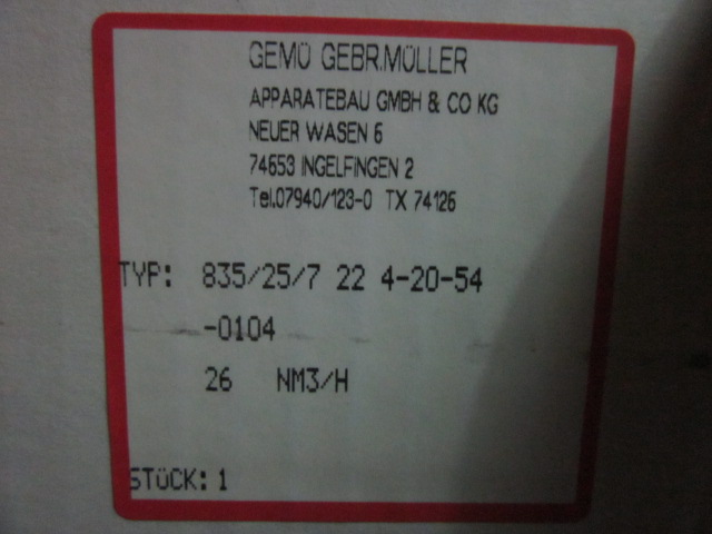 Description: GEMU 835-25-7-22-4-20-54-0104 FLOWMETER, 835, 2-26 m3/h DN 25