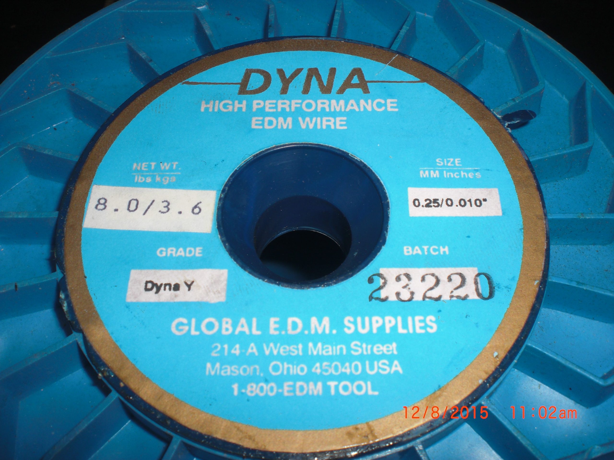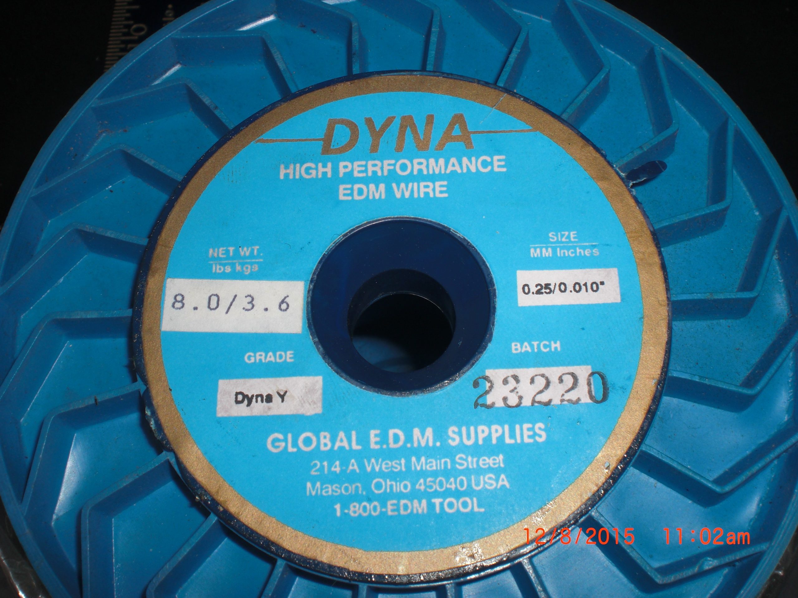 Description: 0.25/0.010 DYNA Y EDM WIRE HIGH PERFORMANCE 8LB
