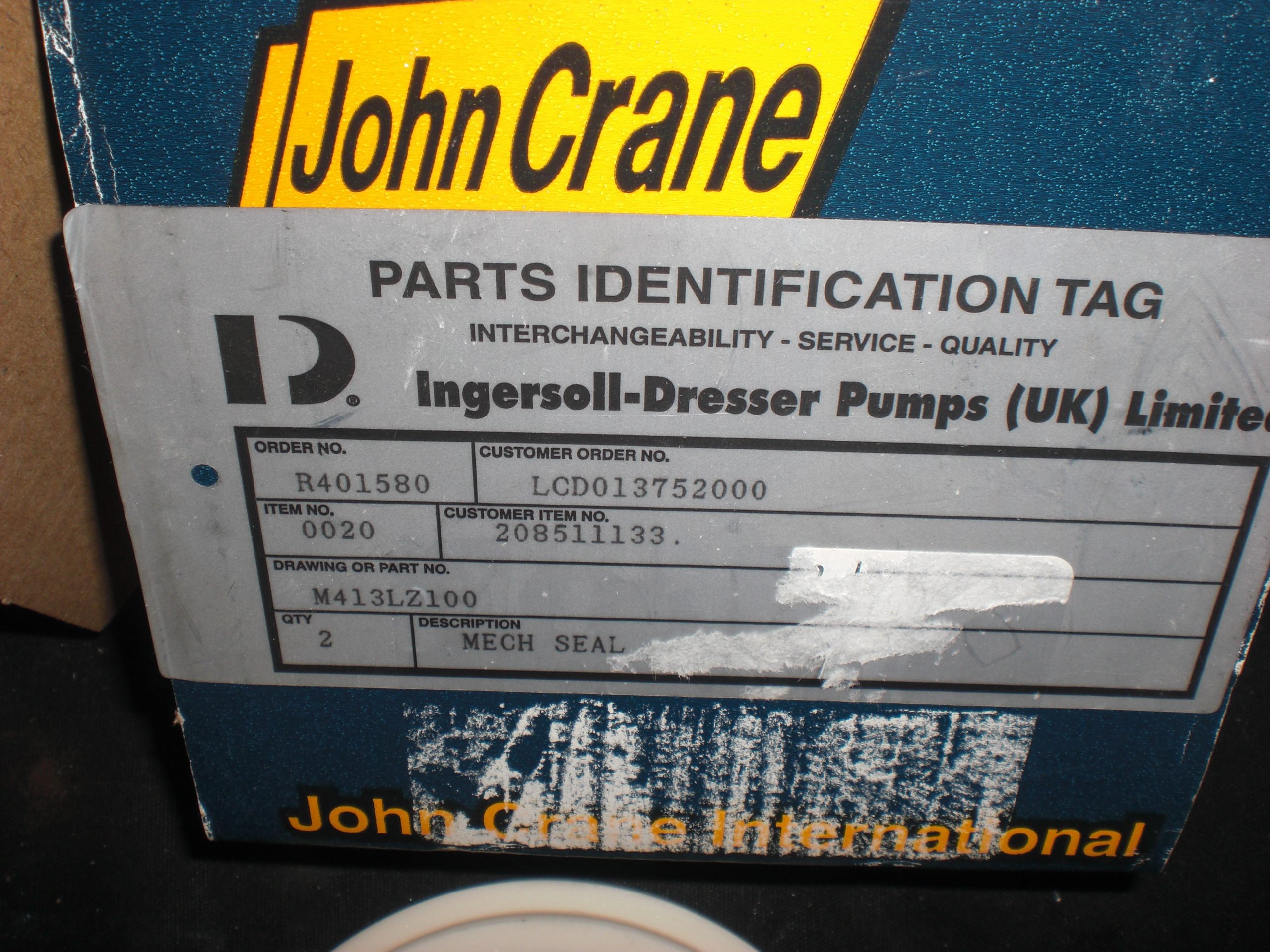 Part Number: JOHN CRANE INTERNATIONAL M413LZ100