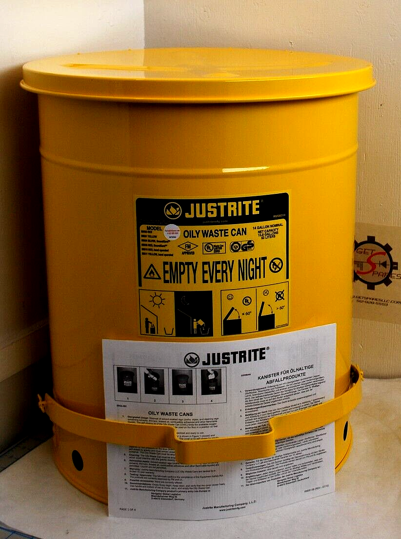 Description: OILY WASTE CAN 14-GAL CORROSIVE YELLOW RECEPTACLE W/FOOT & COVER