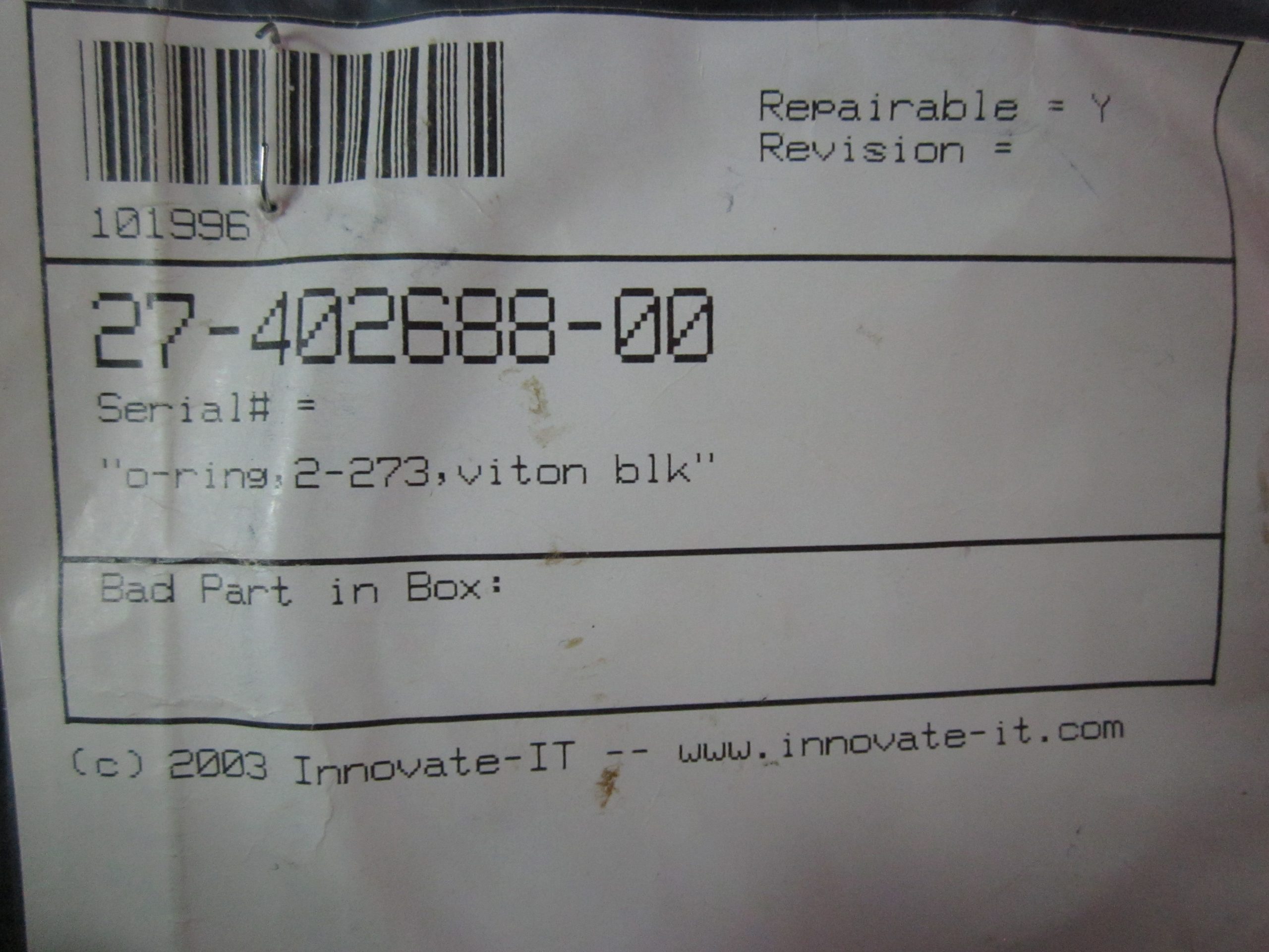 Description: O-RING, 2-273 VITON BLACK