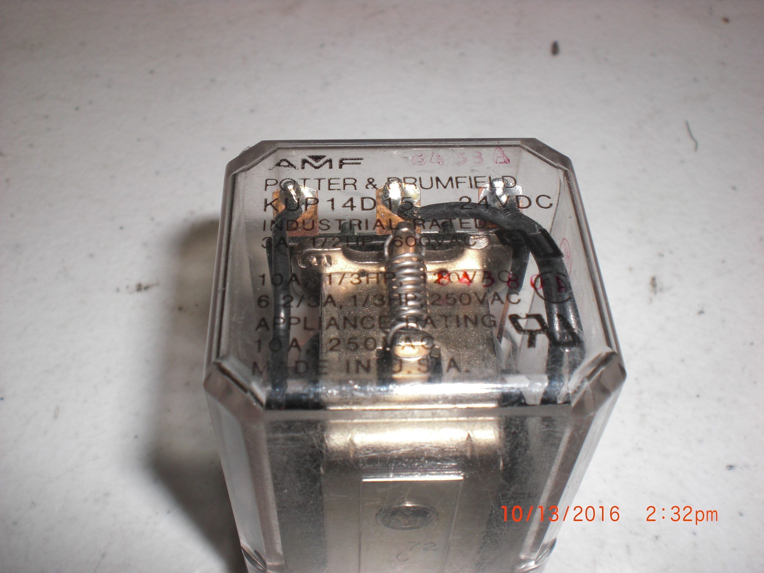 Description: POTTER & BRUMFIELD KUP14D15 24VDC 10A 1/3HP 120VAC 6A 1/3HP 250VAC