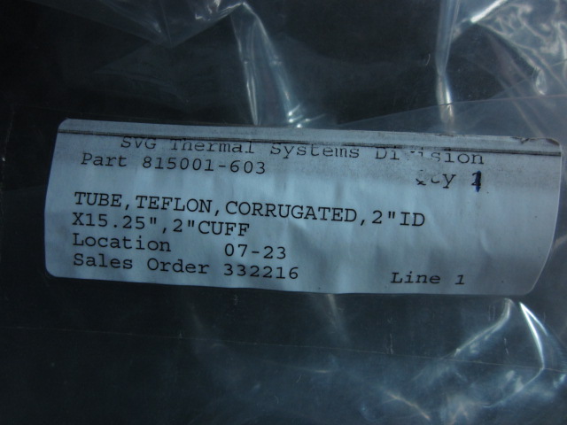 Description: ENTEGRIS SVG THERMAL SYSTEMS 815001-603 PFA Corrugated 2ID x 15L in 2 in cuff